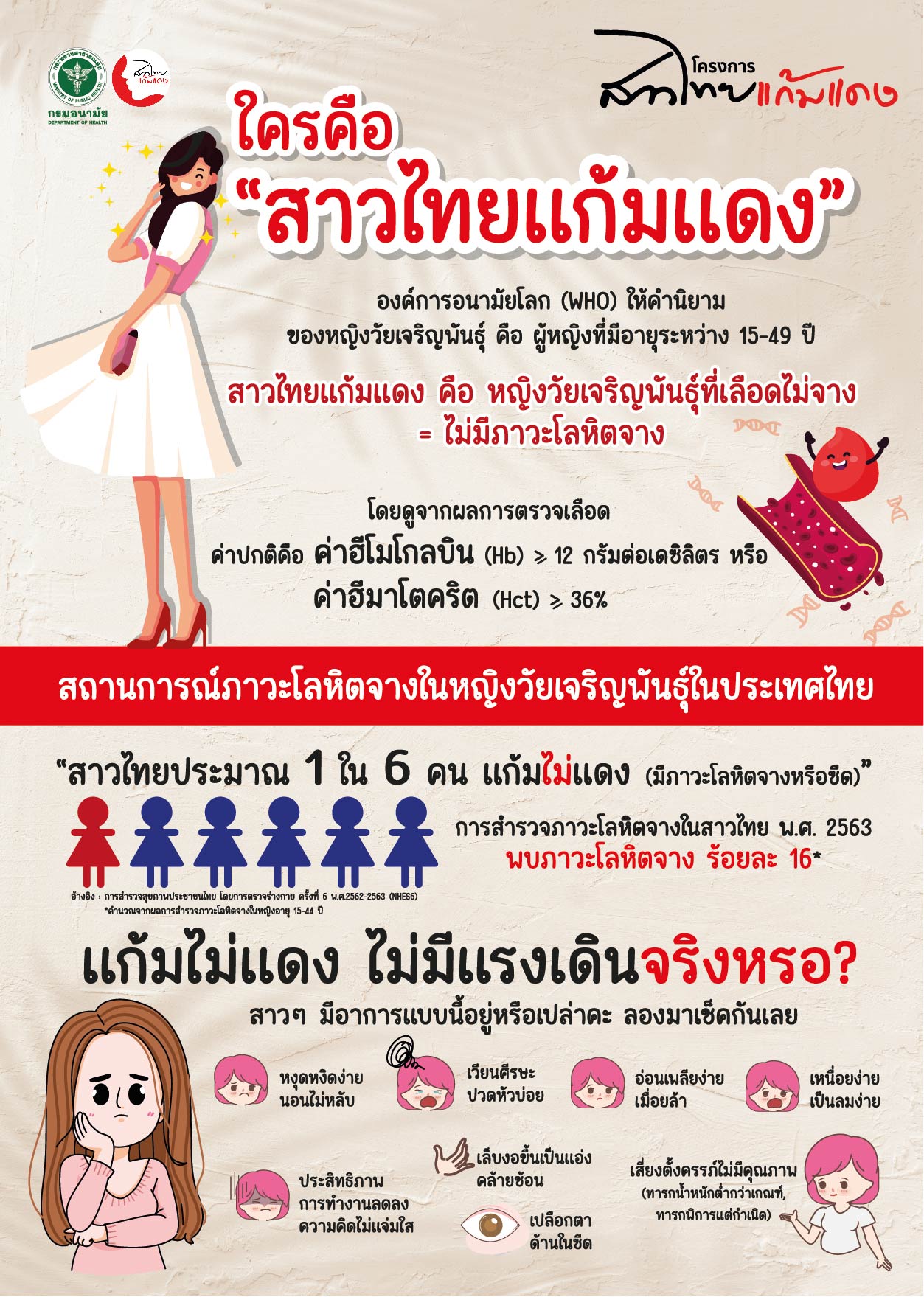 ครงการสาวไทยแก้มแดง เพื่อส่งเสริมสุขภาพบุคลากรป้องกันภาวะโลหิตจางในหญิงวัยเจริญพันธุ์มีความรู้ทักษะในการดูแลสุขภาพตนเองได้อย่างเหมาะสม