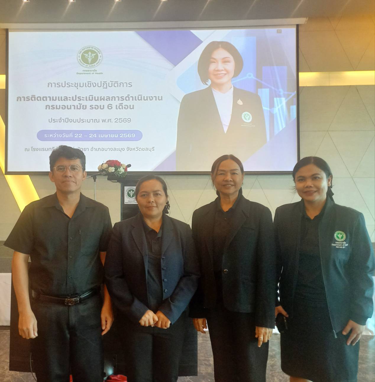 นายแพทย์พีระยุทธ สานุกูล ผู้อำนวยการศูนย์อนามัยที่ 9 มอบหมายให้ นางสุจิตตรา สุมนนอก รองผู้อำนวยการศูนย์อนามัยที่ 9 นครราชสีมา พร้อมคณะ เข้าร่วมประชุมเชิงปฏิบัติการ “การติดตามและประเมินผลการดำเนินงานกรมอนามัย รอบ 6 เดือน ประจำปีงบประมาณ พ.ศ. 2569” ระหว่างวันที่ 22 – 24 เมษายน 2569 ณ โรงแรมทรี ซิกตี้ ไฟว์ โฮเทล อำเภอบางละมุง จังหวัดชลบุรี โดยได้รับเกียรติจาก แพทย์หญิงอัมพร เบญจพลพิทักษ์ อธิบดีกรมอนามัย เป็นประธานเปิดการประชุม นายแพทย์ปกรณ์ ตุงคะเสรีรักษ์ รองอธิบดีกรมอนามัย กล่าวรายงาน