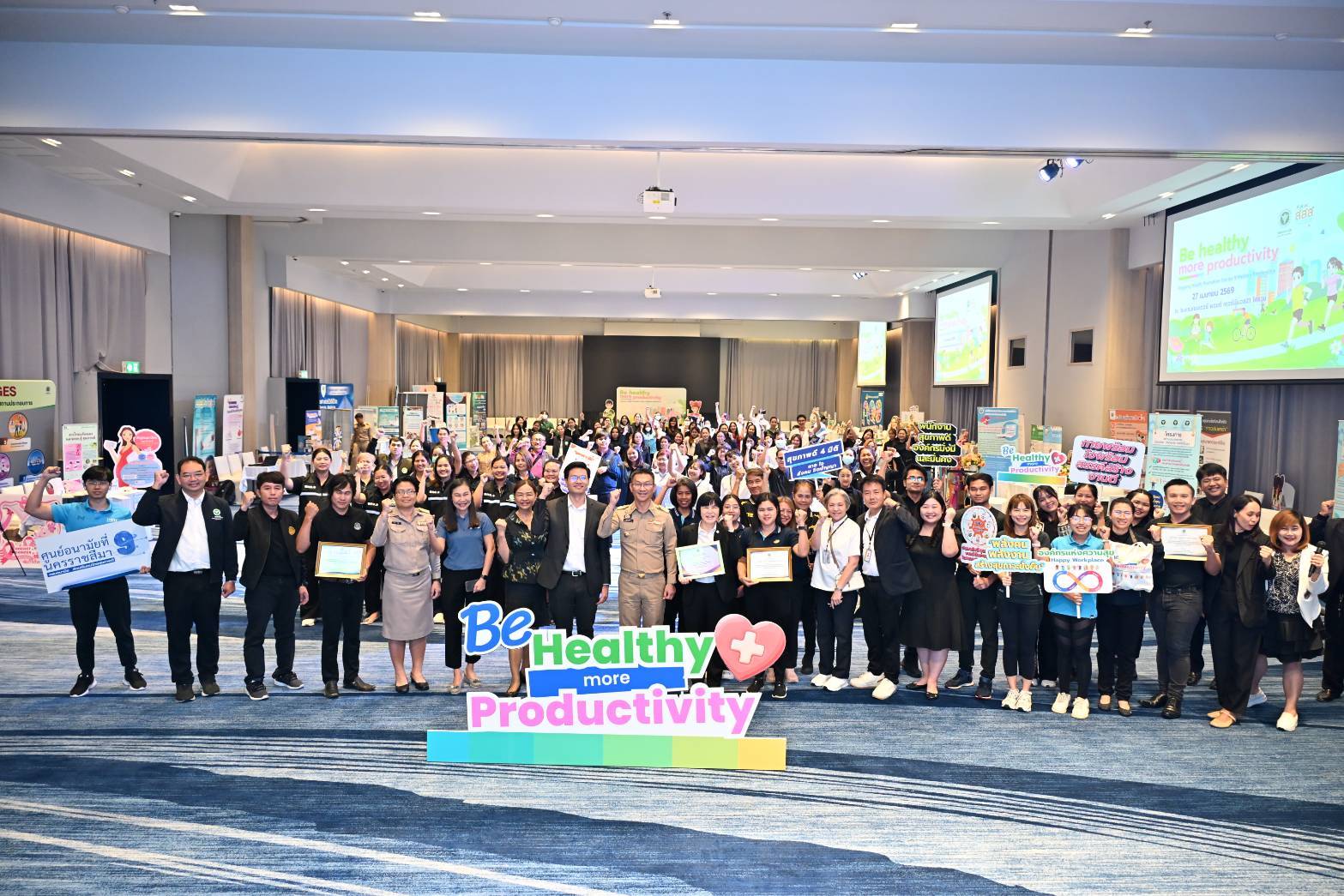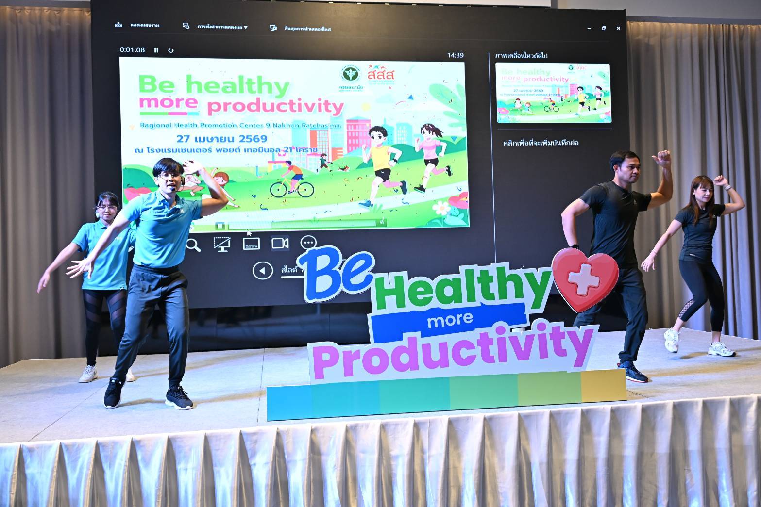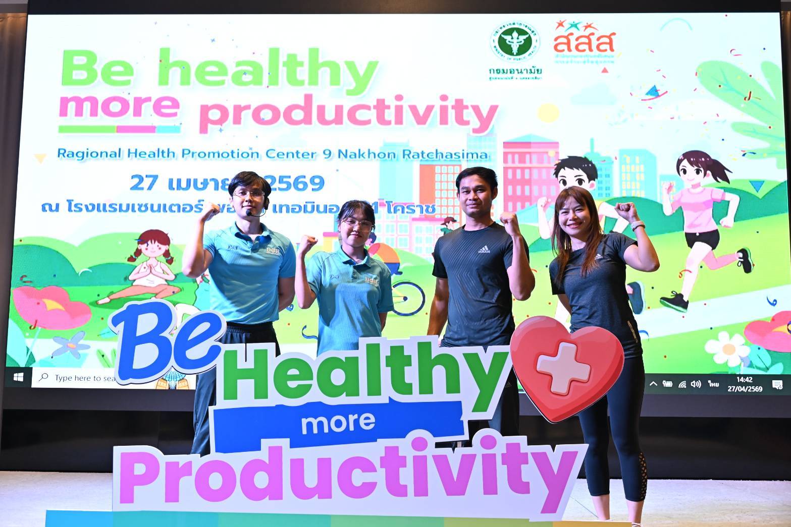 วันที่ 27 เมษายน 2569 ได้รับเกียรติ จาก นายวิจิตร กิจวิรัตน์ รองผู้ว่าราชการจังหวัดนครราชสีมา เป็นประธานเปิดงาน มหกรรมรณรงค์สร้างกระแส "Be Healthy More Productivity" โดยนายแพทย์พีระยุทธ สานุกูล ผู้อำนวยการศูนย์อนามัยที่ 9 นครราชสีมา มอบหมายให้ นายแพทย์นุกูล ปุ๋ยสูงเนิน รองผู้อำนวยการศูนย์อนามัยที่ 9 เป็นผู้แทนกล่าวรายงาน และกลุ่มพัฒนาการส่งเสริมสุขภาพวัยทำงาน จัดกิจกรรมรณรงค์สร้างกระแสการส่งเสริมสุขภาพเชิงรุกในสถานประกอบกิจการ ภายใต้แนวคิด “สุขภาพดี เพิ่มผลผลิต” (Be Healthy More Productivity) ณ โรงแรมเซนเตอร์ พอยต์ เทอมินอล 21 โคราช อำเภอเมืองนครราชสีมา จังหวัดนครราชสีมา วัตถุประสงค์เพื่อการรณรงค์สร้างกระแส "Be Healthy More Productivity": รวมพลังขับเคลื่อนองค์กรสุขภาวะ เพื่อแรงงานสุขภาพดี ผลิตภาพยั่งยืนโดยการส่งเสริมสุขภาพในสถานประกอบกิจการถือเป็นภารกิจสำคัญที่ต้องอาศัยความร่วมมือจากทุกภาคส่วน และสนับสนุนให้คนทำงานขยับกายสร้างสุขภาพดี ซึ่งนำไปสู่ดัชนีมวลกายที่สมดุล และห่างไกลจากโรค NCDs "พนักงานสุขภาพดี คือหัวใจสำคัญของการเพิ่มผลผลิต"การจัดมหกรรมครั้งนี้ มีกิจกรรม การบรรยายความรู้ บูธนิทรรศการ และนำเต้นออกกำลังกาย Long Life Thai Fit ซึ่งได้รับความร่วมมือสนับสนุนบูธนิทรรศการ จากกลุ่มงานเวชศาสตร์วิถีชีวิต กลุ่มงานทันตกรรม กลุ่มพัฒนาการส่งเสริมสุขภาพวัยเรียนวัยรุ่น กลุ่มการประเมินผลกระทบด้านสุขภาพ กลุ่มสุขาภิบาลอาหารและน้ำ ของศูนย์อนามัยที่ 9 นครราชสีมา และหน่วยงานเครือข่าย ได้แก่ ศูนย์สุขภาพจิตที่ 9 สำนักงานป้องกันควบคุมโรคที่ 9 นครราชสีมา ศูนย์ส่งเสริมอุตสาหกรรมภาคที่ 6 โรงพยาบาลจิตเวชนครราชสีมาราชนครินทร์ ศูนย์ความปลอดภัยในการทำงานเขต 3ห้างหุ้นส่วนจำกัด สยามธิดาฟู้ดกรุ๊ป และบริษัท เจ.เอช.อุตสาหกรรม จำกัด ซึ่งการรณรงค์ครั้งนี้ได้รับความสนใจและความร่วมมือจากเครือข่ายเข้าร่วมกิจกรรม 80 หน่วยงานรวมกว่า 180 คน