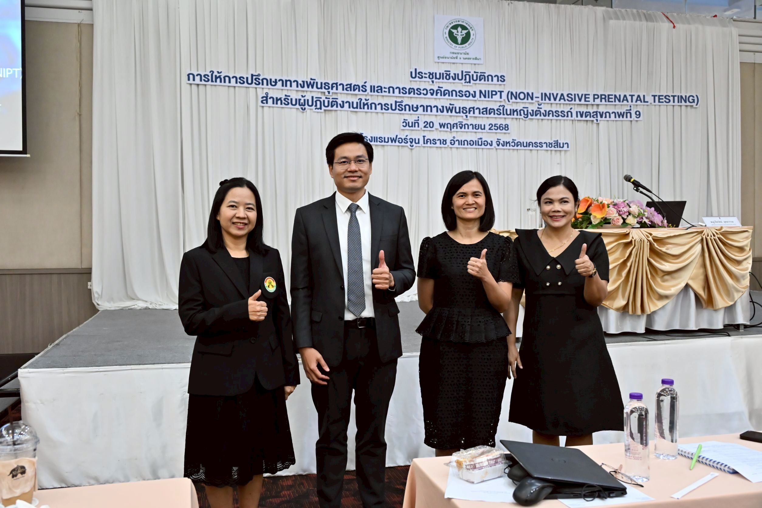 วันที่ 20 พฤศจิกายน 2568 นายแพทย์พีระยุทธ สานุกูล ผู้อำนวยการศูนย์อนามัยที่ 9 นครราชสีมา เป็นประธานเปิดการประชุมการให้การปรึกษาทางพันธุศาสตร์และการตรวจคัดกรอง NIPT (Non-Invasive Prenatal Testing )” และ EMTCT update guideline 2025 สำหรับผู้ปฏิบัติงานให้การปรึกษาทางพันธุศาสตร์ในหญิงตั้งครรภ์ เขตสุขภาพที่ 9 ณ โรงแรมฟอร์จูน โคราช อำเภอเมือง จังหวัดนครราชสีมา ซึ่งกลุ่มพัฒนาอนามัยแม่และเด็กได้จัดประชุมดังกล่าวขึ้น โดยมีวัตถุประสงค์เพื่อ
