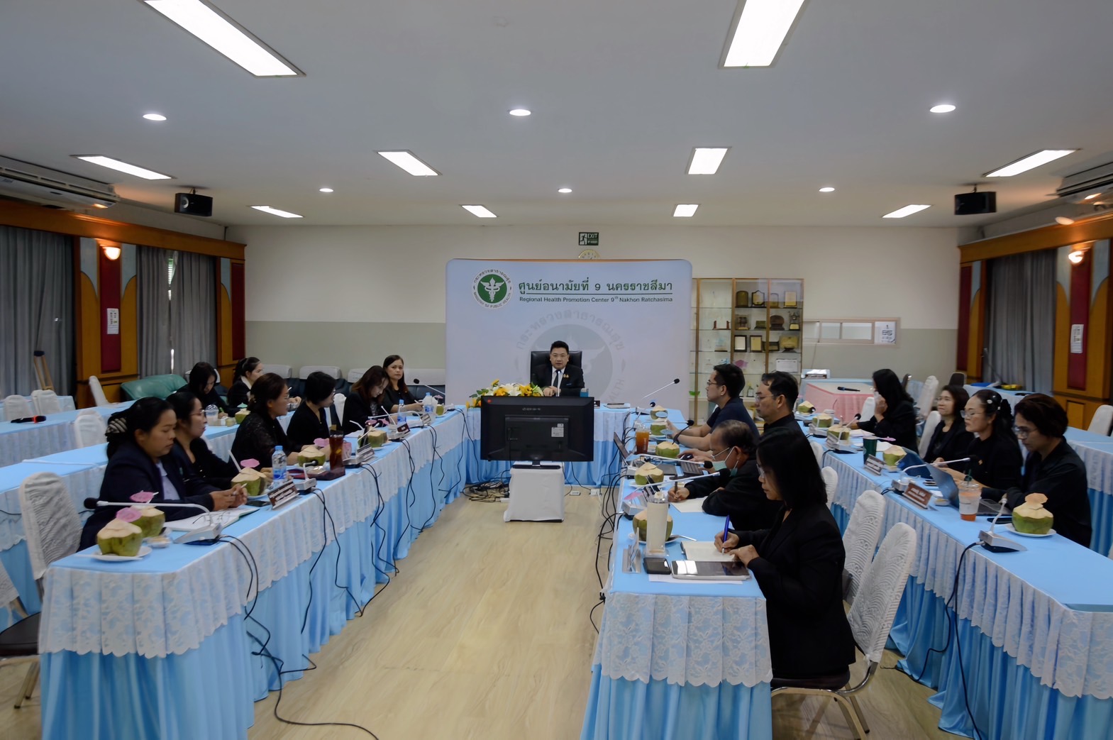 วันที่ 20 พฤศจิกายน 2568 ศูนย์อนามัยที่ 9 นครราชสีมา นำโดย นายแพทย์พีระยุทธ สานุกูล ผู้อำนวยการศูนย์อนามัยที่ 9 นครราชสีมา เป็นประธานการประชุมคณะกรรมการบริหารศูนย์อนามัยที่ 9 นครราชสีมา ครั้งที่ 2/2569 เพื่อกำกับติดตามการดำเนินงานของหน่วยงาน ประจำปีงบประมาณ 2569 ให้บรรลุตามเป้าหมายที่กำหนดไว้ โดยสาระสำคัญของการประชุม ประกอบด้วย เรื่องแจ้งจากผู้อำนวยการศูนย์ฯ รองผู้อำนวยการศูนย์ฯ ผู้ช่วยผู้อำนวยการศูนย์ฯ เรื่องสืบเนื่อง ได้แก่ แผนปฏิบัติการและผลการเบิกจ่ายงบประมาณ สถานการณ์การเงิน เรื่องที่เสนอให้ที่ประชุมทราบ ได้แก่ การดำเนินงานคณะกรรมการวางแผนและประเมินผลการเบิกจ่ายงบประมาณ การดำเนินงานคณะกรรมการพัฒนาวิชาการ การดำเนินงานโรงพยาบาลศูนย์อนามัยที่ 9 เรื่องที่เสนอให้ที่ประชุมพิจารณา ได้แก่ (ร่าง) คำสั่งแต่งตั้งคณะกรรมการองค์กรสร้างสุขและเสริมสร้างคุณภาพชีวิตคนทำงาน ศูนย์อนามัยที่ 9 นครราชสีมา ผลการสำรวจความต้องการในการพัฒนาตนเองของบุคลากรศูนย์อนามัยที่ 9 การเตรียมความพร้อมรับรับมือภัยพิบัติ เขตสุขภาพที่ 9