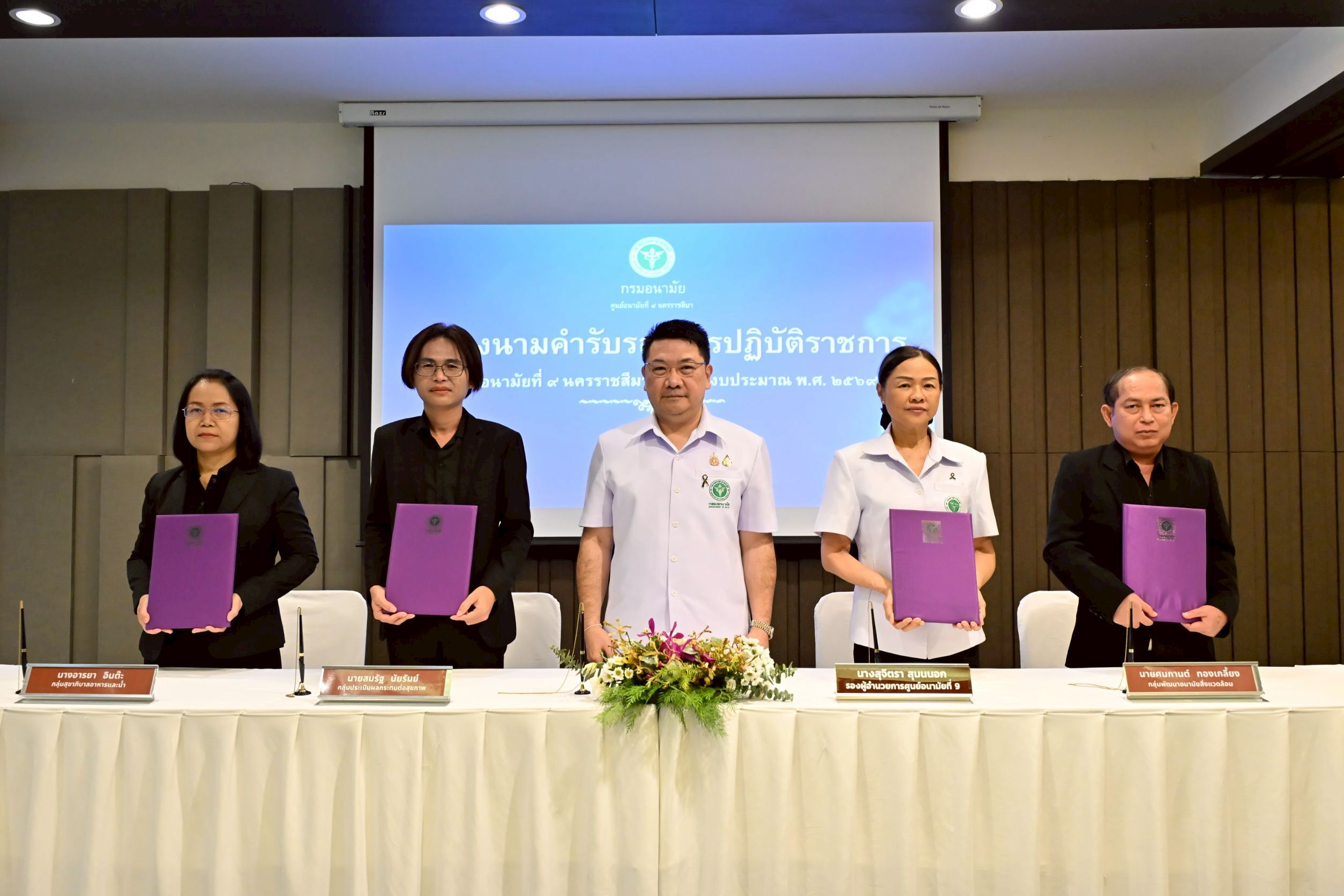 วันที่ 25 พฤศจิกายน 2568 นายแพทย์พีระยุทธ สานุกูล ผู้อำนวยการศูนย์อนามัยที่ 9 นครราชสีมา เป็นประธานพิธีลงนามคำรับรองการปฏิบัติราชการ ประจำปีงบประมาณ 2569 ศูนย์อนามัยที่ 9 นครราชสีมา และมอบนโยบายแนวทางการขับเคลื่อนการดำเนินงานประจำปีงบประมาณ 2569 กลุ่มเป้าหมาย ประกอบ ผู้บริหาร หัวหน้ากลุ่มงาน และเจ้าหน้าที่ศูนย์อนามัยที่ 9 ณ โรงแรมแคนทารี อำเภอเมือง จังหวัดนครราชสีมา