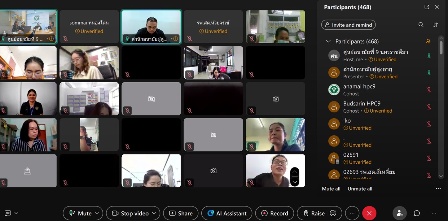 โดยมีวัตถุประสงค์ เพื่อพัฒนาระบบการส่งเสริมสุขภาพผู้สูงอายุ ในเขตสุขภาพที่ 9 ทั้งการจัดทำแผนสุขภาพดี Wellness Plan ที่จะช่วยส่งเสริมให้ผู้สูงอายุมีความรอบรู้ด้านสุขภาพ (Health Literacy) รวมทั้งการสนับสนุนให้เกิดชมรมผู้สูงอายุด้านสุขภาพ โดยการมีส่วนร่วมของเครือข่ายในชุมชนแบบบูรณาการ ให้สามารถเข้าถึงระบบบริการสุขภาพแบบครบวงจร กลุ่มเป้าหมายประกอบด้วย เจ้าหน้าที่สาธารณสุขที่รับผิดชอบงานผู้สูงอายุ ผู้แทนจากชมรมผู้สูงอายุในพื้นที่ ระดับจังหวัดและองค์การบริหารส่วนจังหวัด และบุคลากรอื่นๆ ที่เกี่ยวข้อง ในพื้นที่เขตสุขภาพที่ 9 สำหรับการอบรมเชิงปฏิบัติการในครั้งนี้ ผู้เข้าร่วมได้รับองค์ความรู้และทักษะ ในการใช้งานสมุดบันทึกสุขภาพผู้สูงอายุ Blue Book Application เพื่อประเมินคัดกรองความเสี่ยง 9 ด้าน ในผู้สูงอายุ การจัดทำแผนสุขภาพดี Wellness Plan การลงทะเบียนและการประเมินชมรมผู้สูงอายุคุณภาพตามเกณฑ์มาตรฐาน กรมอนามัย โดยได้รับการสนับสนุนวิทยากรผู้เชี่ยวชาญ จากสำนักอนามัยผู้สูงอายุ กรมอนามัย ในการถ่ายทอดองค์ความรู้ ทักษะ การใช้งานโปรแกรม Blue Book Application และแนวทางการดำเนินงานที่เหมาะสมและมีประสิทธิภาพต่อไ