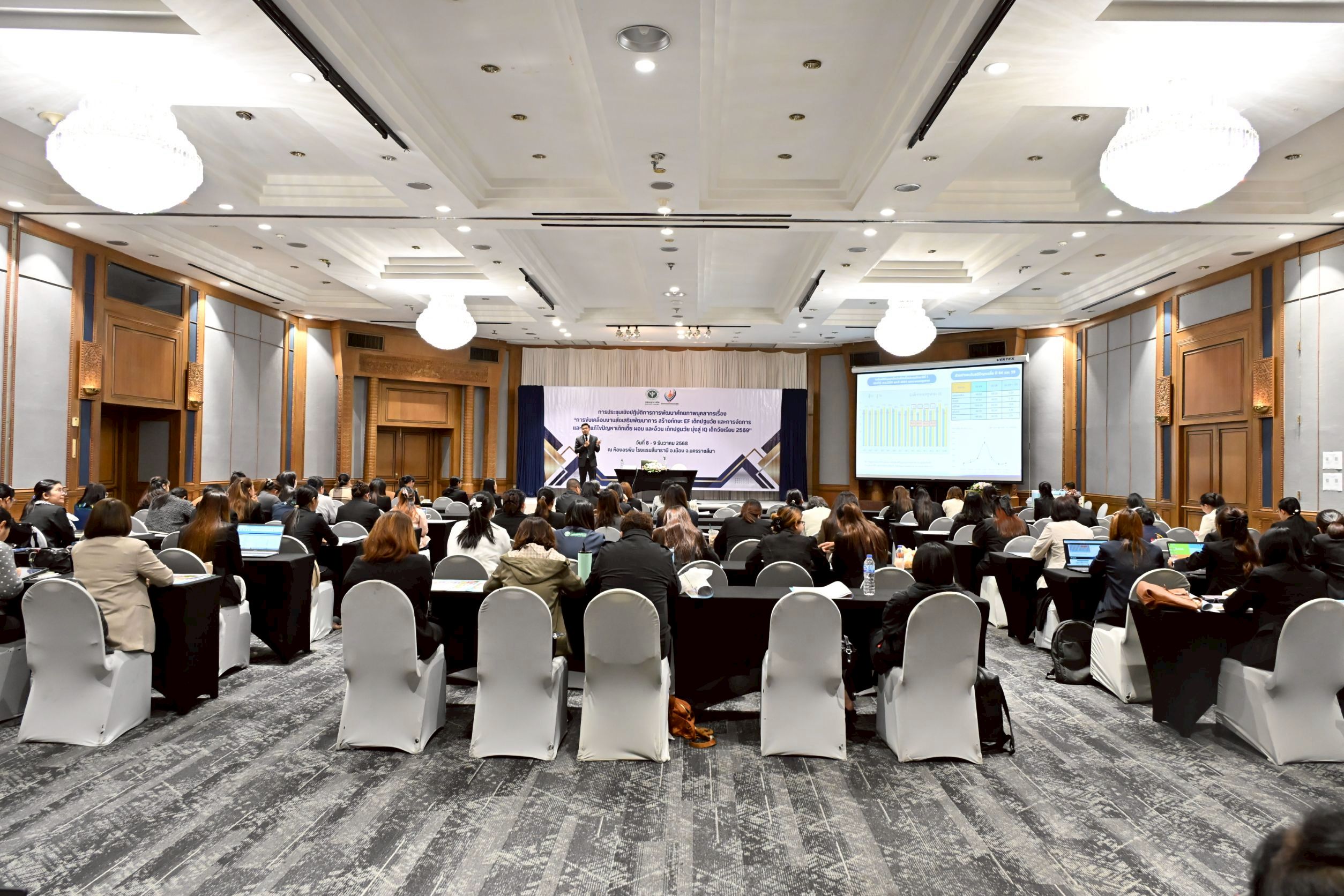 วันที่ 8 – 9 ธันวาคม 2568 นายแพทย์พีระยุทธ สานุกูล ผู้อำนวยการศูนย์อนามัยที่ 9 นครราชสีมา มอบหมายให้ นายแพทย์นุกูล ปุ๋ยสูงเนิน รองผู้อำนวยการศูนย์อนามัยที่ 9 นครราชสีมา เป็นประธานเปิดการประชุมเชิงปฏิบัติการการพัฒนาศักยภาพบุคลากรเรื่อง “การขับเคลื่อนงานส่งเสริมพัฒนาการ สร้างทักษะ EF เด็กปฐมวัย และการจัดการและแก้ไขปัญหาเด็กเตี้ย ผอม และอ้วน เด็กปฐมวัย มุ่งสู่ IQ เด็กวัยเรียน 2569” ณ ห้องประชุมอรพิม โรงแรมสีมาธานี อ.เมืองนครราชสีมา จ.นครราชสีมา