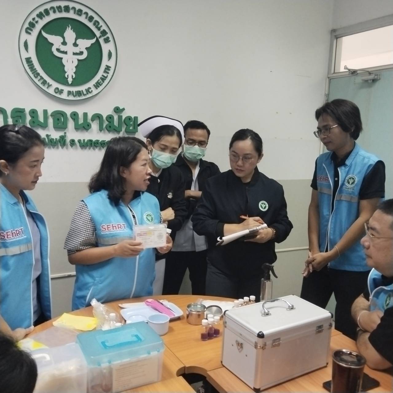 วันที่ 15 ธันวาคม 2568 นายแพทย์พีระยุทธ สานุกูล ผู้อำนวยการศูนย์อนามัยที่ 9 นครราชสีมา และบุคลากร Team SEhRT ศูนย์อนามัยที่ 9 นครราชสีมา ได้ประชุมเตรียมความพร้อมบุคลากร ในการปฏิบัติงาน ณ ศูนย์พักพิง จังหวัดสุรินทร์ และบุรีรัมย์ กรณีสถานการณ์ชายแดน ไทย - กัมพูชา โดยมีการให้ความรู้ที่เกี่ยวข้องกับการปฏิบัติงานในพื้นที่ การจัดการด้านอนามัยสิ่งแวดล้อม 7 มิติ และสาธิตการตรวจสอบโคลิฟอร์มแบคทีเรีย (อ11) การตรวจเชื้อโคลิฟอร์มแบคทีเรีย ที่ปนเปื้อนในภาชนะสัมผัสอาหาร มือผู้สัมผัสอาหาร และอาหาร (อ13) และคลอรีนอิสระคงเหลือในน้ำ (อ31)