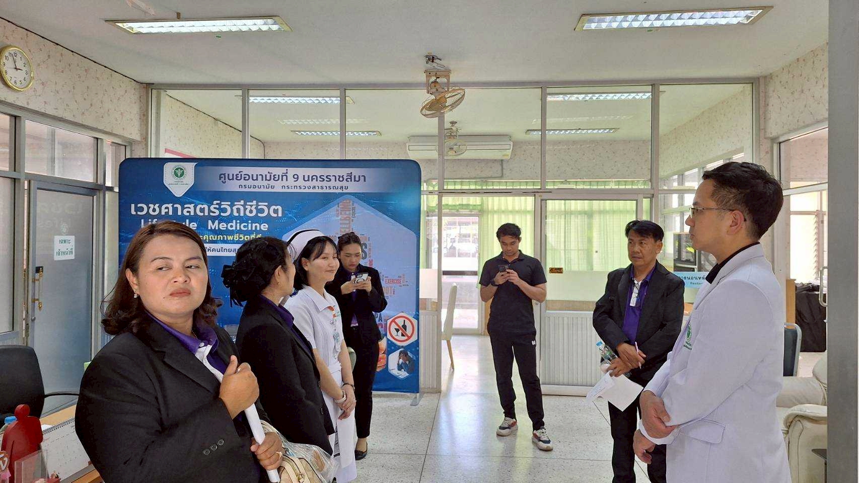 วันที่ 3 กุมภาพันธ์ 2569 นายแพทย์พีระยุทธ สานุกูล ผู้อำนวยการศูนย์อนามัยที่ 9 นครราชสีมา มอบหมายให้ ทีมโรงพยาบาลส่งเสริมสุขภาพศูนย์อนามัยที่ 9 นครราชสีมา นำโดย นพ.ภรัญวิทย์ อนันต์ดิลกฤทธิ์ ผู้อำนวยการโรงพยาบาลส่งเสริมสุขภาพ ศูนย์อนามัยที่ 9 นครราชสีมา เป็นผู้กล่าวต้อนรับคณะเจ้าหน้าที่ศึกษาดูงานจากโรงพยาบาลชัยภูมิ โดยมีนางภรภัทร ซอมตะคุ พยาบาลวิชาชีพชำนาญการพิเศษ รักษาการหัวหน้ากลุ่มการพยาบาล และคณะเจ้าหน้าที่ร่วมต้อนรับ คณะศึกษาดูงานจำนวน 22 คน นำโดย นพ.ธนิศศักดิ์ ทวีโคตร รองผู้อำนวยการด้านบริการทุติและตติยภูมิ ซึ่งมีวัตถุประสงค์เพื่อศึกษาดูงานต้นแบบคลินิกเวชศาสตร์วิถีชีวิต เพื่อนำไปเปิดบริการคลินิกเวชศาสตร์วิถีชีวิตในหน่วยงานเพื่อบริการให้กับประชาชนในพื้นที่ ในการดูแลสุขภาพ ปรับเปลี่ยนพฤติกรรมเป็นรายบุคคลโดยใช้การประเมิน stage of change ประเมินพฤติกรรมสุขภาพ ผ่านการพบแพทย์และทีมสหวิชาชีพในทุกครั้ง โดยวางแผนร่วมกันกับผู้รับบริการอย่างต่อเนื่อง
