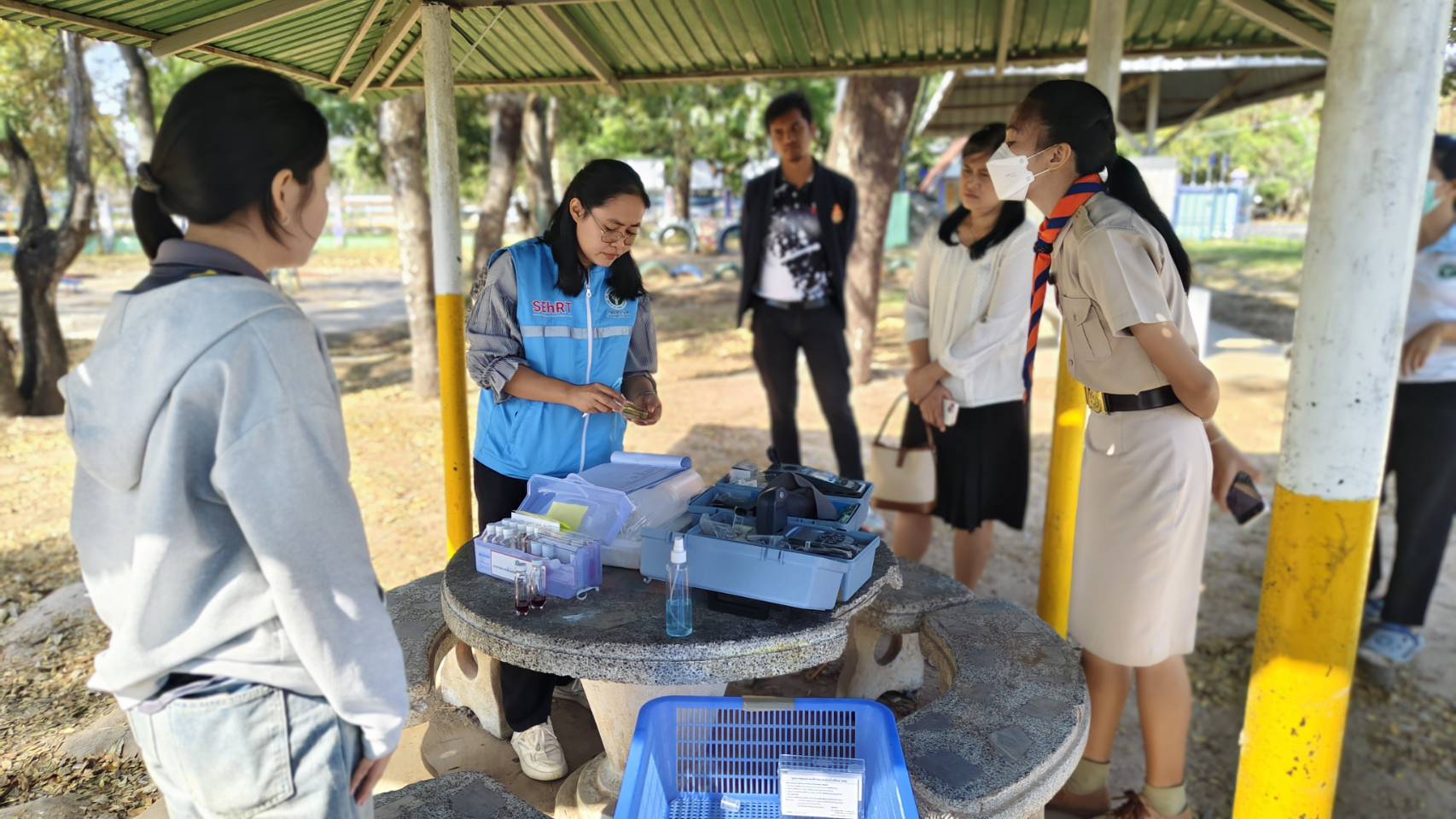 ระหว่างวันที่ 11-12 กุมภาพันธ์ 2569 นายแพทย์พีระยุทธ สานุกูล ผู้อำนวยการศูนย์อนามัยที่ 9 นครราชสีมา มอบหมายให้กลุ่มสุขาภิบาลอาหารและน้ำ ร่วมกับสำนักงานสาธารณสุขจังหวัดบุรีรัมย์ โรงพยาบาลส่งเสริมสุขภาพตำบลบ้านศรีภูมิ โรงพยาบาลส่งเสริมสุขภาพตำบลบ้านหนองบัว และสำนักงานเขตพื้นที่การศึกษามัธยมศึกษาบุรีรัมย์ เขต 2 ลงพื้นที่เยี่ยมเสริมพลังและ Coaching ด้านสุขาภิบาลอาหารและน้ำ โดยมีการยกระดับคุณภาพน้ำอุปโภค บริโภค ส่งตรวจวิเคราะห์ทางห้องปฏิบัติการตามเกณฑ์คุณภาพน้ำประปาดื่มได้ กรมอนามัย และยกระดับคุณภาพอาหารด้วยการตรวจประเมินโรงครัว และเฝ้าระวังการปนเปื้อนเชื้อโคลิฟอร์มแบคทีเรียด้วยชุด อ13 รวมทั้งตรวจประเมิน HAS ในโรงเรียน กพด. จังหวัดบุรีรัมย์ จำนวน 5 แห่ง ดังนี้