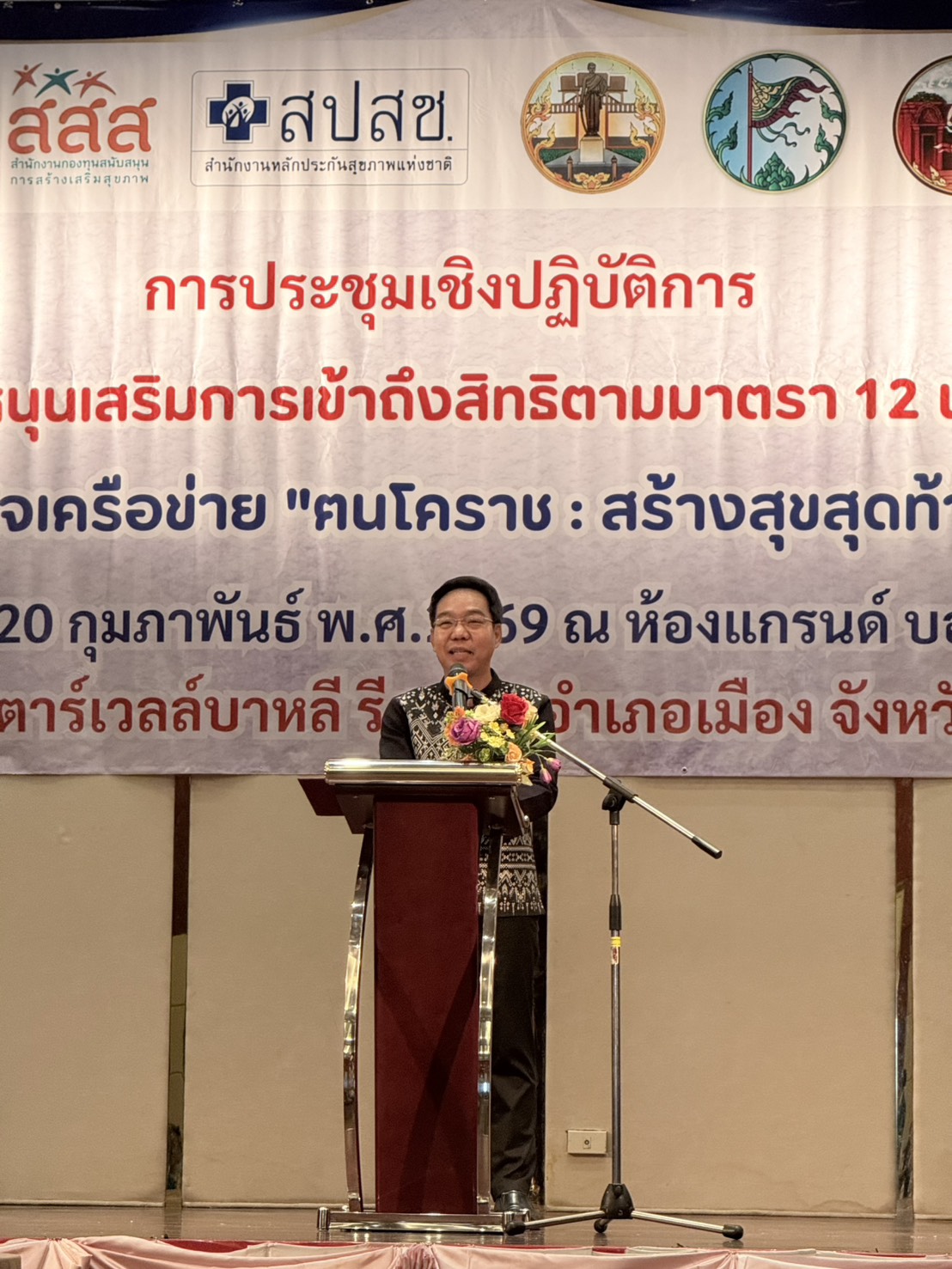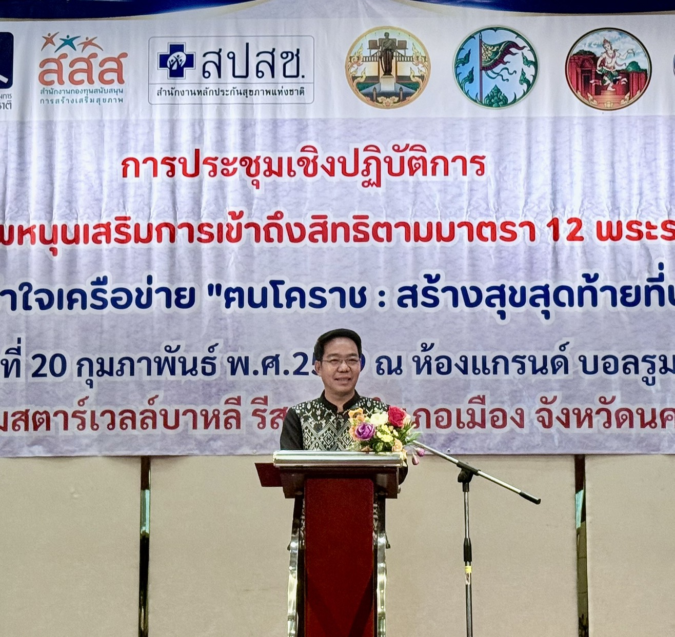 วันที่ 20 กุมภาพันธ์ 2569 นายแพทย์พีระยุทธ สานุกูล ผู้อำนวยการศูนย์อนามัยที่ 9 นครราชสีมา มอบหมายให้ ดร.สินศักดิ์ชนม์ อุ่นพรมมี ผู้ช่วยผู้อำนวยการฯ พร้อมด้วยกลุ่มพัฒนาการส่งเสริมสุขภาพผู้สูงอายุ เข้าร่วมประชุมเชิงปฏิบัติการพัฒนาระบบบริการสุขภาพหนุนเสริมการเข้าถึงสิทธิตามมาตรา 12 พระราชบัญญัติสุขภาพแห่งชาติ 2550 โดยการสร้างความรอบรู้ความเข้าใจเครือข่าย “ตนโคราช :สร้างสุขสุดท้ายที่ปลายทาง” จังหวัดนครราชสีมา ณ ห้องแกรนด์ บอลรูม ชั้น 2 โรงแรม สตาร์เวลล์บาหลี รีสอร์ท อ.เมือง จ.นครรราชสีมา โดยมีวัตถุประสงค์เพื่อสร้างความรู้ความเข้าใจ การใช้ประโยชน์ข้อมูลการบริหารจัดการหนังสือแสดงเจตนาฯ (e-Living Will) ของผู้ป่วยให้กับบุคลากรที่เกี่ยวข้องของสถานบริการสาธารณสุขและอาสาสมัครระดับอำเภอ ระดับตำบลในพื้นที่ 8 อำเภอ รูปแบบการประชุม เป็นการบรรยายพิเศษ แบ่งกลุ่มฝึกปฏิบัติ และแลกเปลี่ยนความคิดเห็น ข้อเสนอแนะ กลุ่มเป้าหมายที่เข้าร่วมประชุม จำนวนกว่า 200 คน