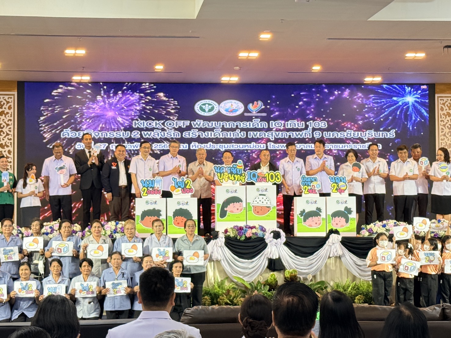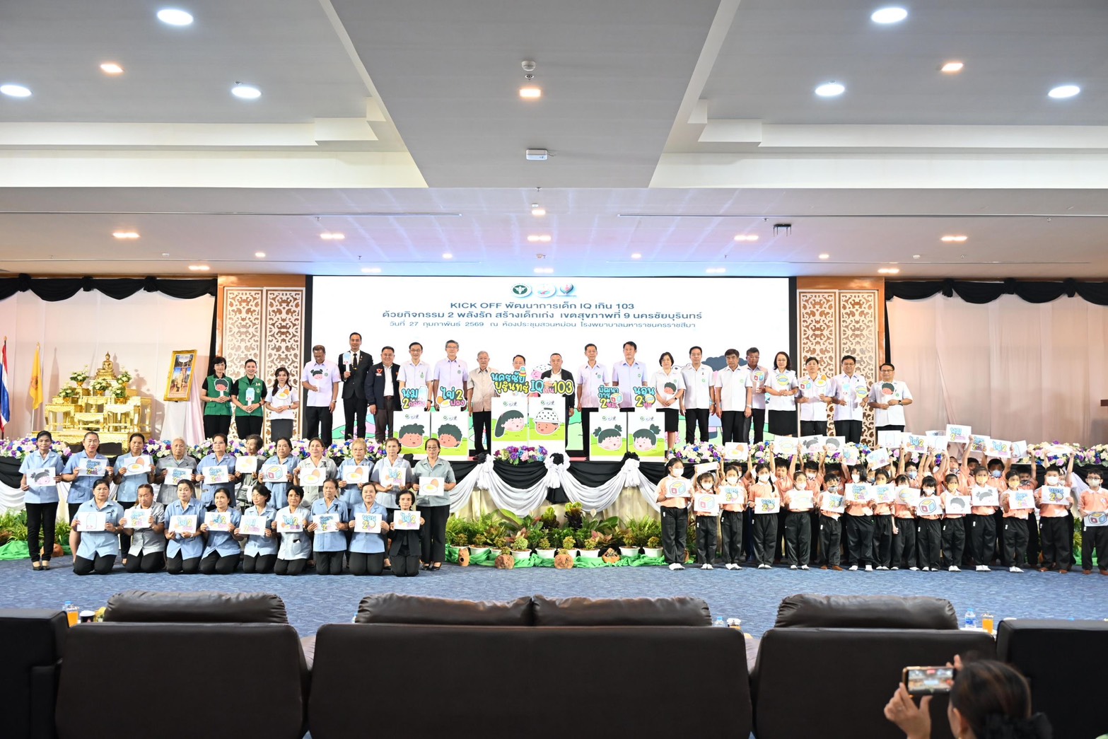ภายหลังเสร็จสิ้นภารกิจ ณ จังหวัดบุรีรัมย์ คณะผู้บริหารได้เดินทางต่อไปยังโรงพยาบาลมหาราชนครราชสีมา จังหวัดนครราชสีมา เพื่อเปิดโครงการตามนโยบายสำคัญปีงบประมาณ 2569 “พัฒนาการเด็กนครชัยบุรินทร์ IQ เกิน 100 ด้วย 2 พลังรัก สร้างเด็กเก่ง” ซึ่งมุ่งส่งเสริมพัฒนาการเด็กปฐมวัยในพื้นที่นครชัยบุรินทร์ให้มีศักยภาพสมวัยทั้งด้านร่างกาย สติปัญญา และอารมณ์