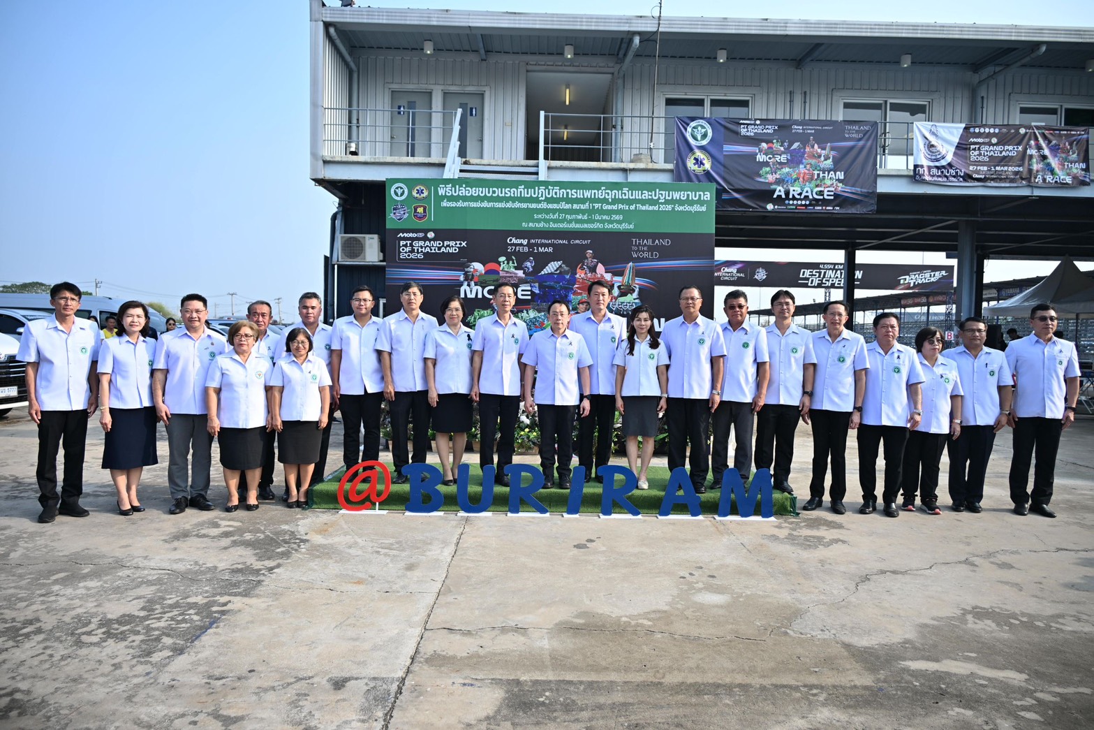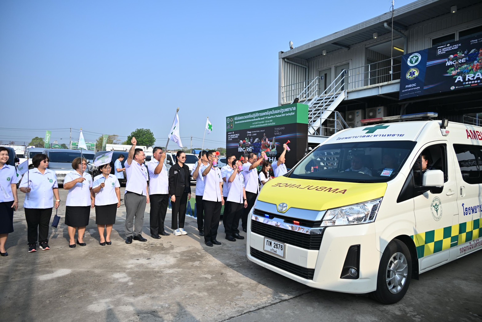 ชิงแชมป์โลก รายการ “PT Grand Prix of Thailand 2026” โดยมี นายแพทย์สมฤกษ์ จึงสมาน ปลัดกระทรวงสาธารณสุข เป็นประธานในพิธีเปิด โอกาสนี้ นายแพทย์วิทิต สฤษฎีชัยกุล ผู้ตรวจราชการกระทรวงสาธารณสุข เขตสุขภาพที่ 9 กล่าวรายงานถึงความพร้อมของระบบบริการการแพทย์ฉุกเฉิน การบูรณาการความร่วมมือของหน่วยงานในพื้นที่ การเตรียมบุคลากรทางการแพทย์ รถพยาบาล และระบบ