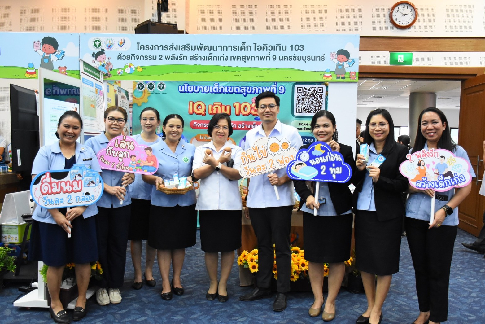 ตามที่กระทรวงสาธารณสุข มีนโยบายในการดำเนินงานสร้างสุขภาพดีทุกช่วงวัย คนไทยแข็งแรง ส่งมอบความแข็งแรง ทั้งกายและจิตใจ เด็กมีพัฒนาการสมวัย วัยรุ่นมี IQ EQ ดีสำนักงานเขตสุขภาพที่ 9 จึงได้จัดกิจกรรมโครงการส่งเสริมพัฒนาการเด็ก IQ เกิน 103 ด้วยกิจกรรม 2 พลังรัก สร้างเด็กเก่งเขตสุขภาพที่ 9 นครชัยบุรินทร์ เพื่อสร้างกระแสให้ประชาชน เห็นความสำคัญของการส่งเสริมพัฒนาการเด็กปฐมวัยมุ่งสู่ IQ เกิน 103 ในเขตสุขภาพที่ 9 การประชุมครั้งนี้ผู้เข้าร่วมประชุมประกอบด้วย เจ้าหน้าที่สาธารณสุข บุคลาการทางการแพทย์ ผู้ปฏิบัติงานด้านสาธารณสุขทุกระดับ ในเขตสุขภาพที่ 9 จำนวน 700 คน
