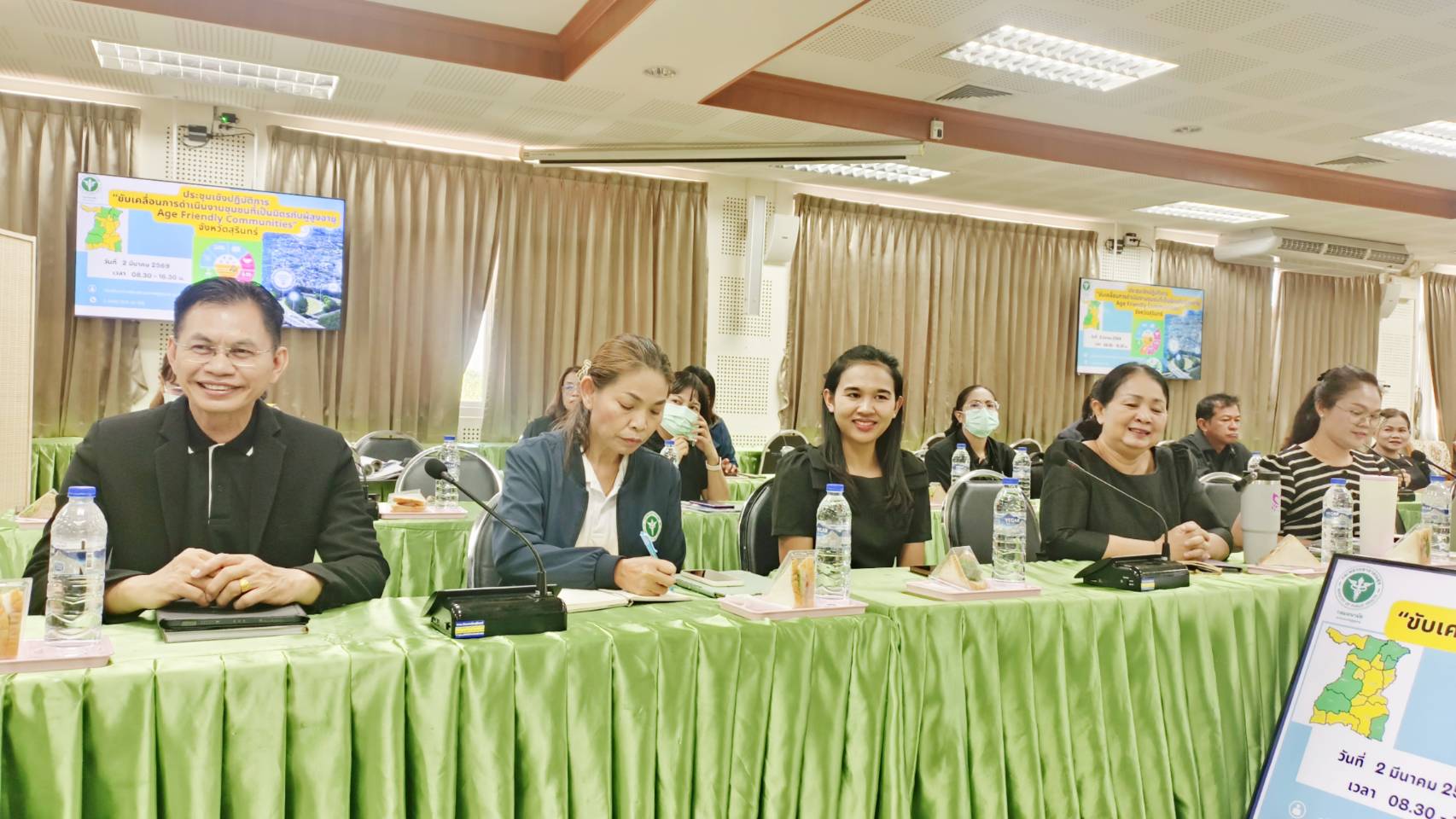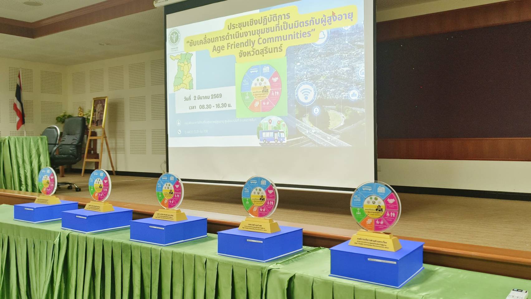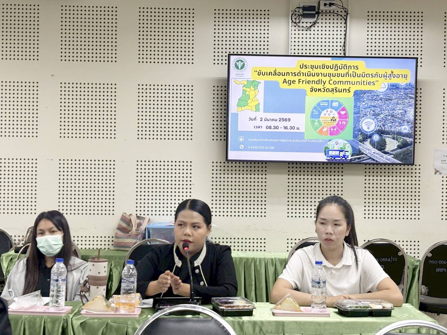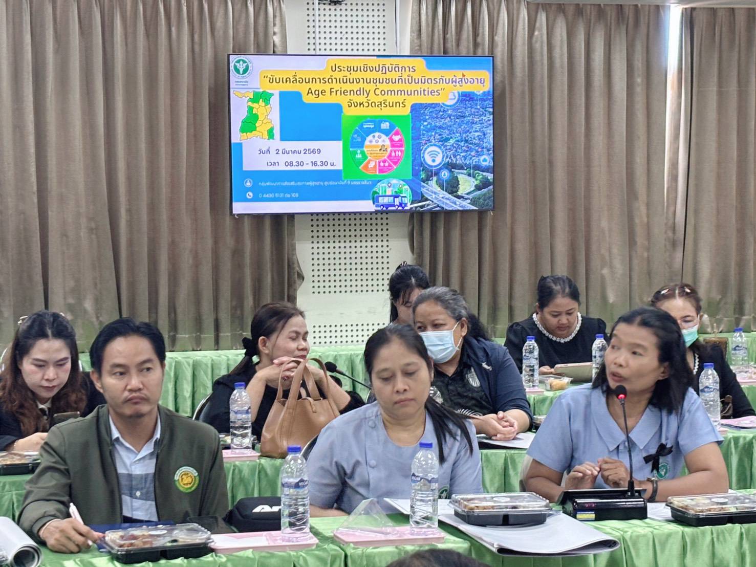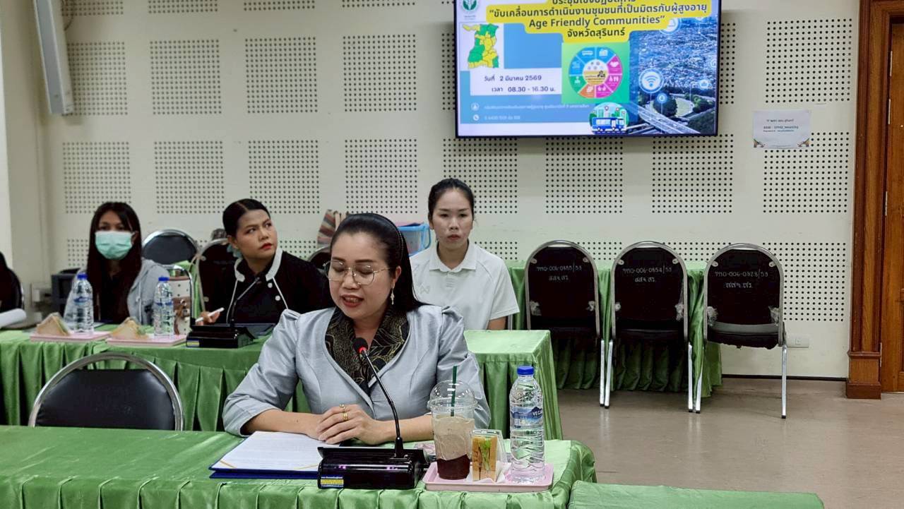 การประชุมในครั้งนี้มีวัตถุประสงค์ เพื่อชี้แจงแนวทางการขับเคลื่อนการดำเนินงานชุมชนที่เป็นมิตรกับผู้สูงอายุ (Age – Friendly Communities) ซึ่งผลการดำเนินงานด้านการพัฒนาชุมชนที่เป็นมิตรกับผู้สูงอายุและผู้พิการ (AFC) จังหวัดสุรินทร์ ตั้งแต่ปีงบประมาณ 2566 ถึงปัจจุบัน มีพื้นที่ดำเนินการ จำนวน 38 แห่ง ผ่านเกณฑ์การประเมิน 8 องค์ประกอบ และได้รับการรับรองจากคณะกรรมการฯ จำนวน 13 แห่ง คิดเป็นร้อยละ 34.21 ซึ่งครอบคลุม 6 อำเภอ ได้แก่ อำเภอเมืองสุรินทร์ อำเภอท่าตูม อำเภอปราสาท อำเภอรัตนบุรี อำเภอโนนนารายณ์ และอำเภอบัวเชด โดยมีแผนดำเนินการให้คลอบคลุมทุกอำเภอพร้อมผลักดันพื้นที่ที่ได้รับการรับรองแล้ว สู่ชุมชนเป็นมิตรกับผู้สูงอายุคุณภาพยอดเยี่ยมระดับเขต (BEST AFC REGION AWARD ) ต่อไป