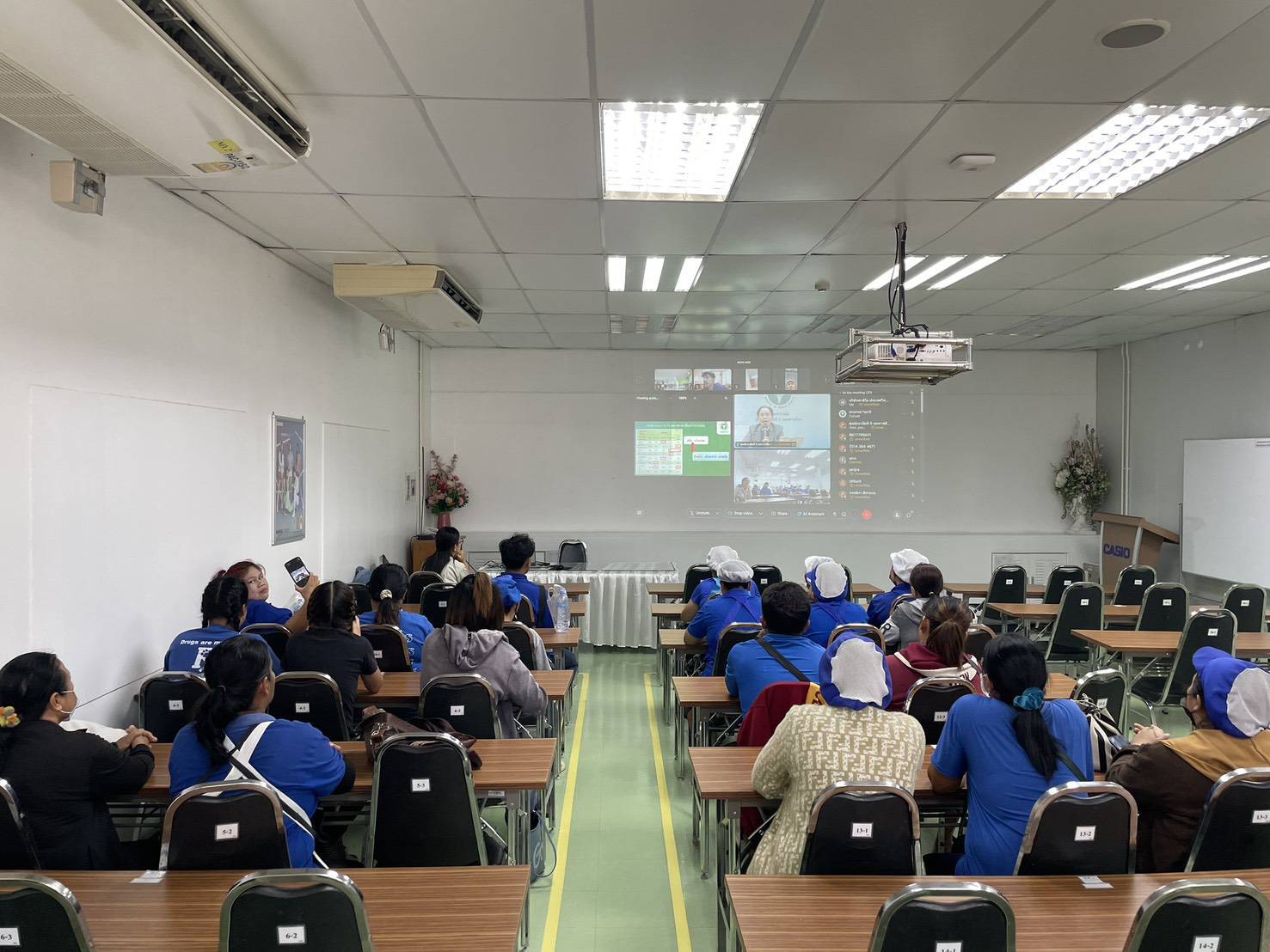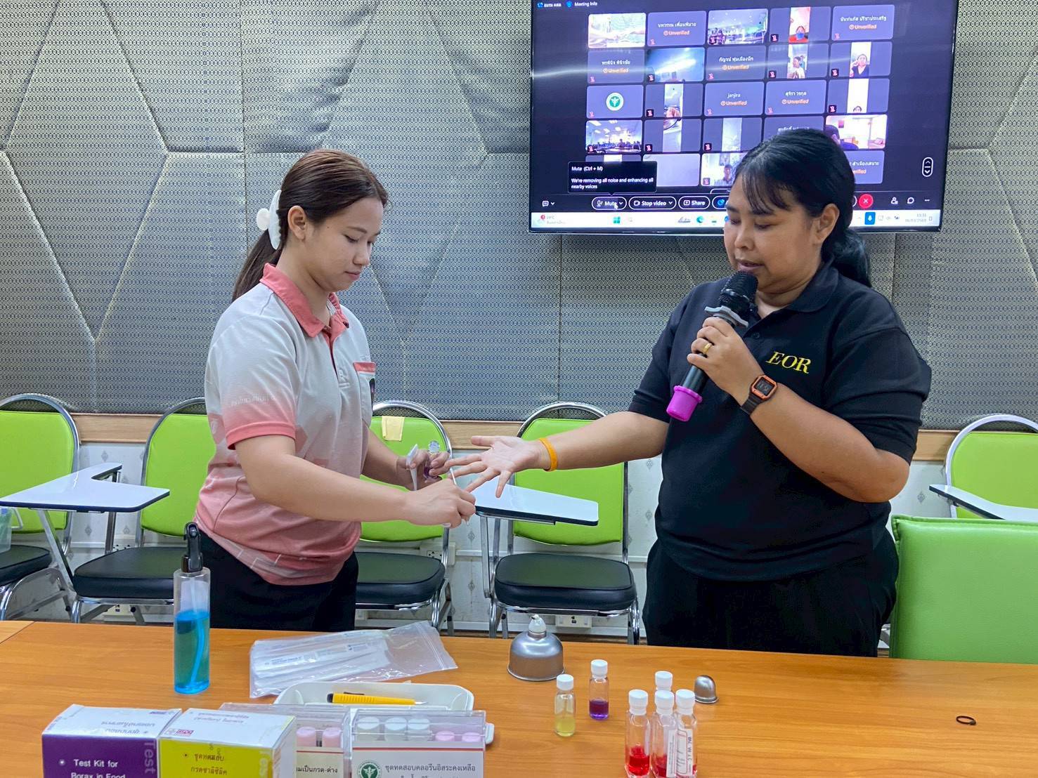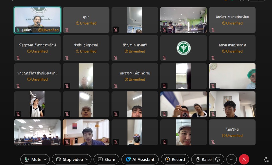 วันที่ 6 มีนาคม 2569 นายแพทย์พีระยุทธ สานุกูล ผู้อำนวยการศูนย์อนามัยที่ 9 นครราชสีมา มอบหมายให้กลุ่มสุขาภิบาลอาหารและน้ำ และกลุ่มพัฒนาอนามัยสิ่งแวดล้อม จัดอบรมพัฒนาศักยภาพผู้สัมผัสอาหาร ตามหลักสูตรการสุขาภิบาลอาหาร ผ่านระบบวิดีโอคอนเฟอร์เรนซ์ ณ ห้องประชุมศูนย์อนามัยที่ 9 นครราชสีมา ผู้เข้าร่วมอบรม จำนวน 80 คน