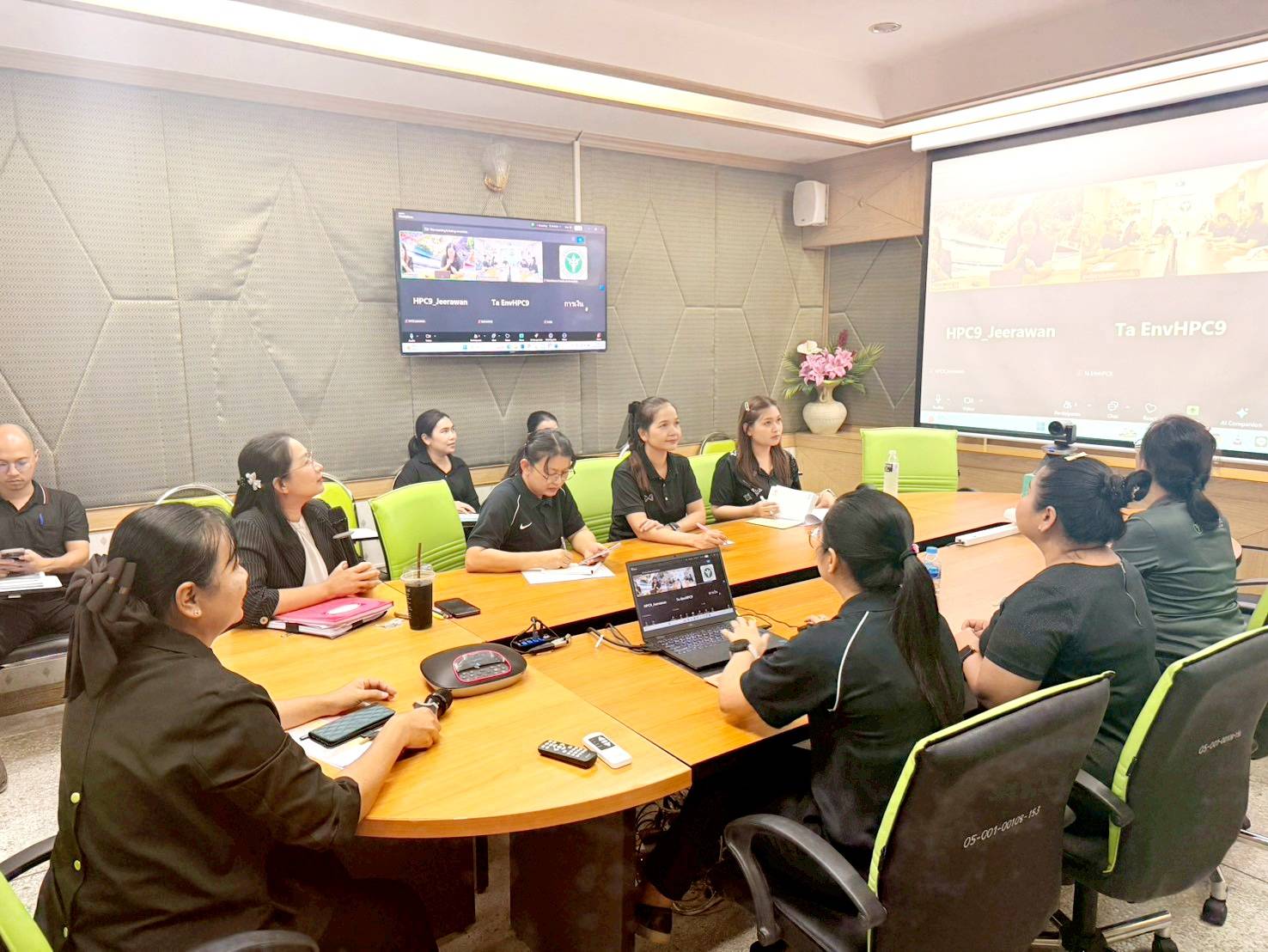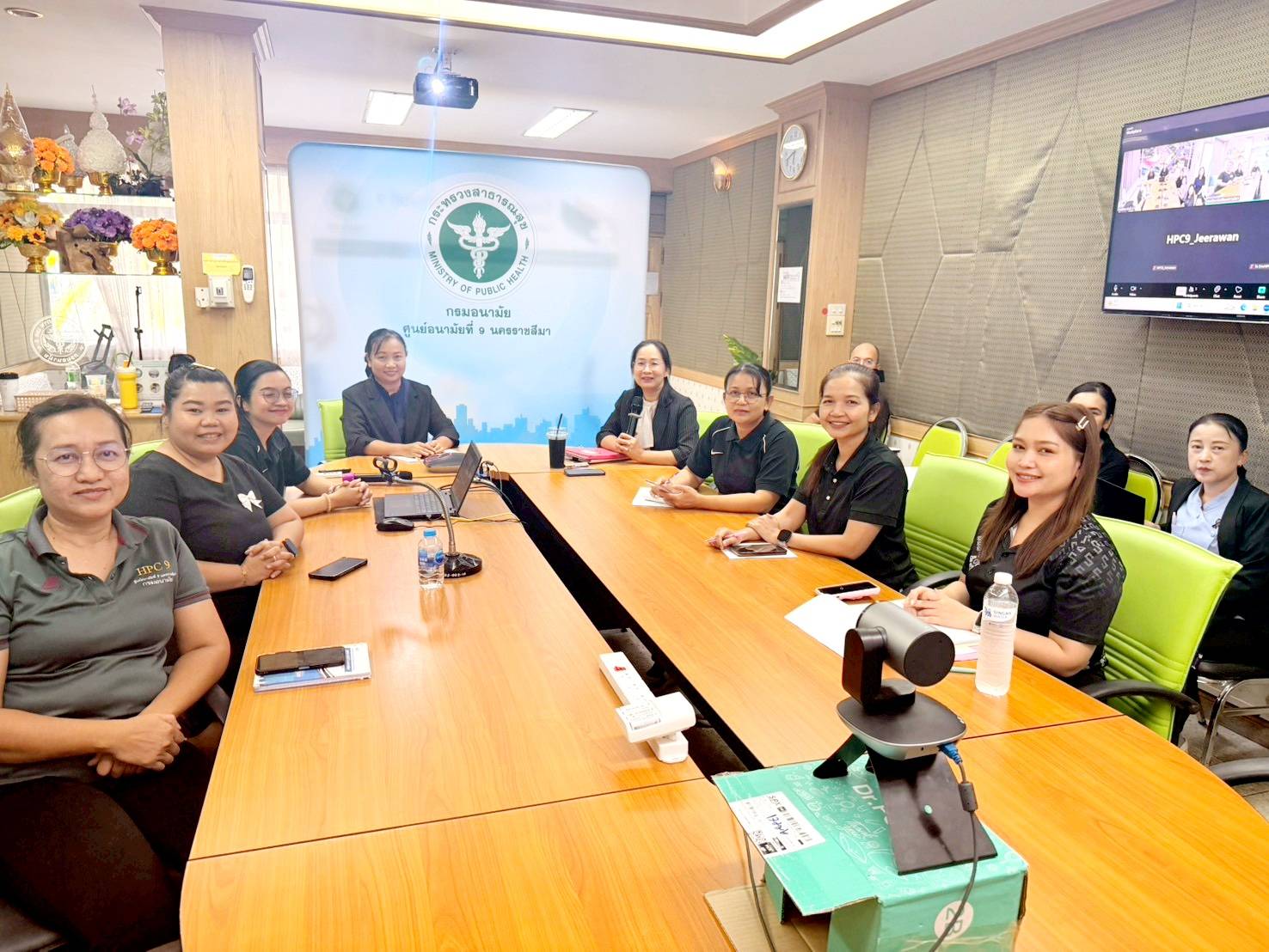 วันที่ 11 มีนาคม 2569 นายแพทย์พีระยุทธ สานุกูล ผู้อำนวยการศูนย์อนามัยที่ 9 นครราชสีมา มอบหมาย คณะกรรมการITAและชมรมจริยธรรม ศูนย์อนามัยที่9 นครราชสีมา แลกเปลี่ยนเรียนรู้เกี่ยวกับการขับเคลื่อนองค์กรคุณธรรมกับศูนย์อนามัยที่11 นครศรีธรรมราช ผ่านระบบออนไลน์ ณ ห้องประชุมมิตรภาพชั้น 1 โดยมีบุคลากรศูนย์อนามัยที่ 9 เข้าร่วมแลกเปลี่ยนเรียนรู้ จำนวน 15 คน และศูนย์อนามัยที่ 11 จำนวนกว่า10คน รวมกว่า 25 คน กิจกรรมในครั้งนี้มีวัตถุประสงค์เพื่อแลกเปลี่ยนเรียนรู้การดำเนินงานขับเคลื่อนองค์กรคุณธรรมของ 2 หน่วยงาน ซึ่งศูนย์อนามัยที่ 11 ได้รับรางวัลชนะเลิศองค์กรคุณธรรมต้นแบบของกรมอนามัยประจำปี 2568 มีจุดเด่นการดำเนินงานที่เป็นแบบอย่างที่ดี อาทิ กิจกรรม Giving and Sharing ตลาดนัดสีเขียว คุณธรรมพอเพียง จิตอาสาพัฒนาสิ่งแวดล้อม ยกย่องเชิดชูบุคลากรต้นแบบที่ช่วยเหลือผู้อื่น กิจกรรมอวยพรวันเกิดซึ่งให้ระลึกถึงบุญคุณของบิดามารดา ยกย่องเชิดชูชุมชนต้นแบบการทำความดี จิตอาสาช่วยสังคมเช่น ตัดผมให้ผู้พิการ กิจกรรมเธอยังมีฉัน Support เสมอ มีสถานที่ให้บุคลากรพักผ่อนและผ่อนคลาย การเสริมสร้างคุณธรรมนำใจ บริการด้วยมิตรไมตรี และการจัดทำสื่อส่งเสริมคุณธรรมพอเพียง ในขณะที่ศูนย์อนามัยที่9 ได้ร่วมแลกเปลี่ยนกิจกรรมที่อยู่ภายใต้ โครงการเสริมสร้างคุณธรรม จริยธรรม ความโปร่งใส ยกระดับสู่องค์กรคุณธรรมและองค์กรสร้างสุข ศูนย์อนามัยที่ 9นครราชสีมา ปีงบประมาณ 2569 ได้แก่1.กิจกรรมพัฒนาองค์กรด้านสิ่งแวดล้อม 2.กิจกรรมเสริมสร้างวัฒนธรรมแก่บุคลากร 3.กิจกรรมเสริมสร้างความสุข ความผูกพันขององค์กร 4.ยกระดับองค์กรคุณธรรม และ5.กิจกรรมการป้องกันการทุจริต ซึ่งกิจกรรมที่ได้รับความสนใจและเป็นจุดเด่น คือ ชมรมรักษ์การออม การแก้ไขปัญหา Happy moneyของบุคลากร การเสริมสร้างรายได้จากตลาดนัดออนไลน์ และกิจกรรมธนาคารความดี ที่มีการดำเนินงานมาอย่างต่อเนื่อง โดยหน่วยงานมีเป้าหมายขับเคลื่อนยกระดับองค์กรสู่ความเป็นเลิศและมีธรรมาภิบาลอย่างยั่งยืน