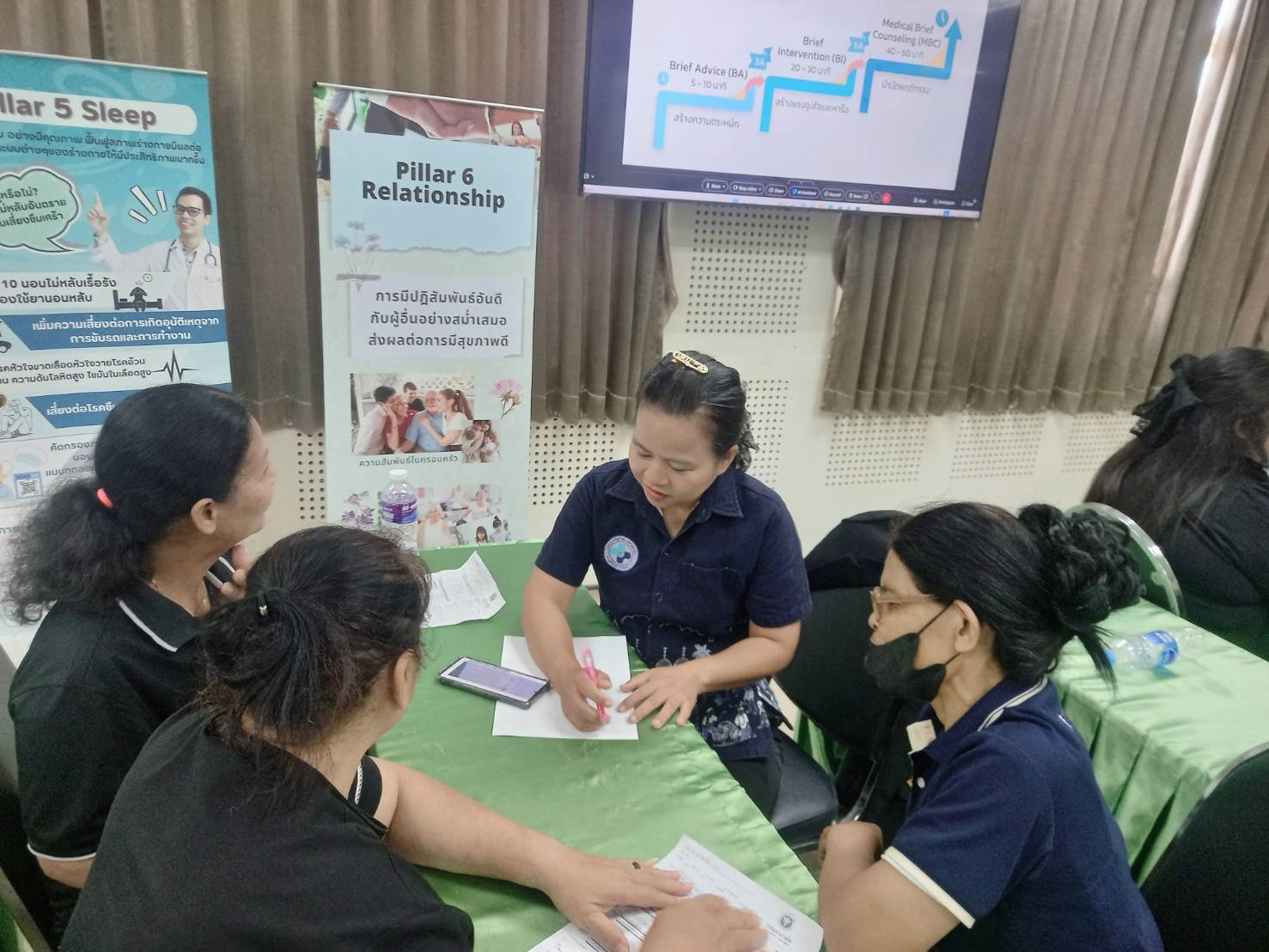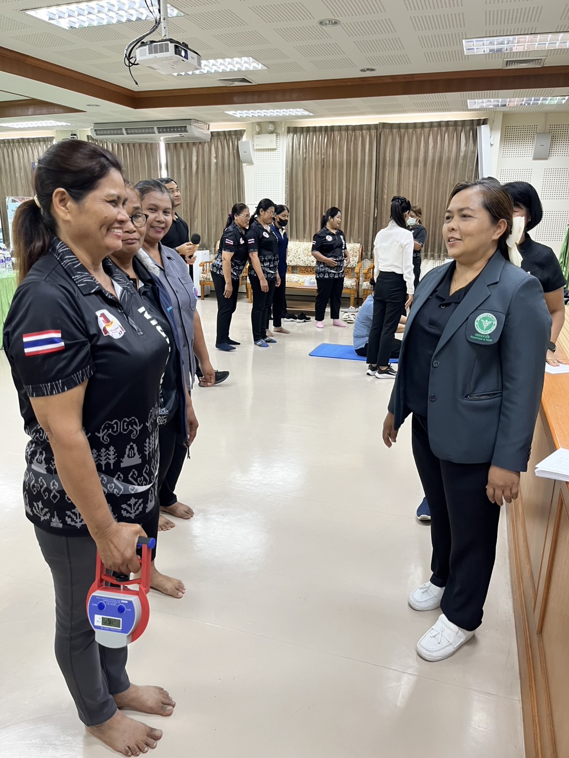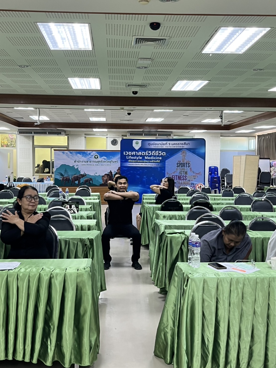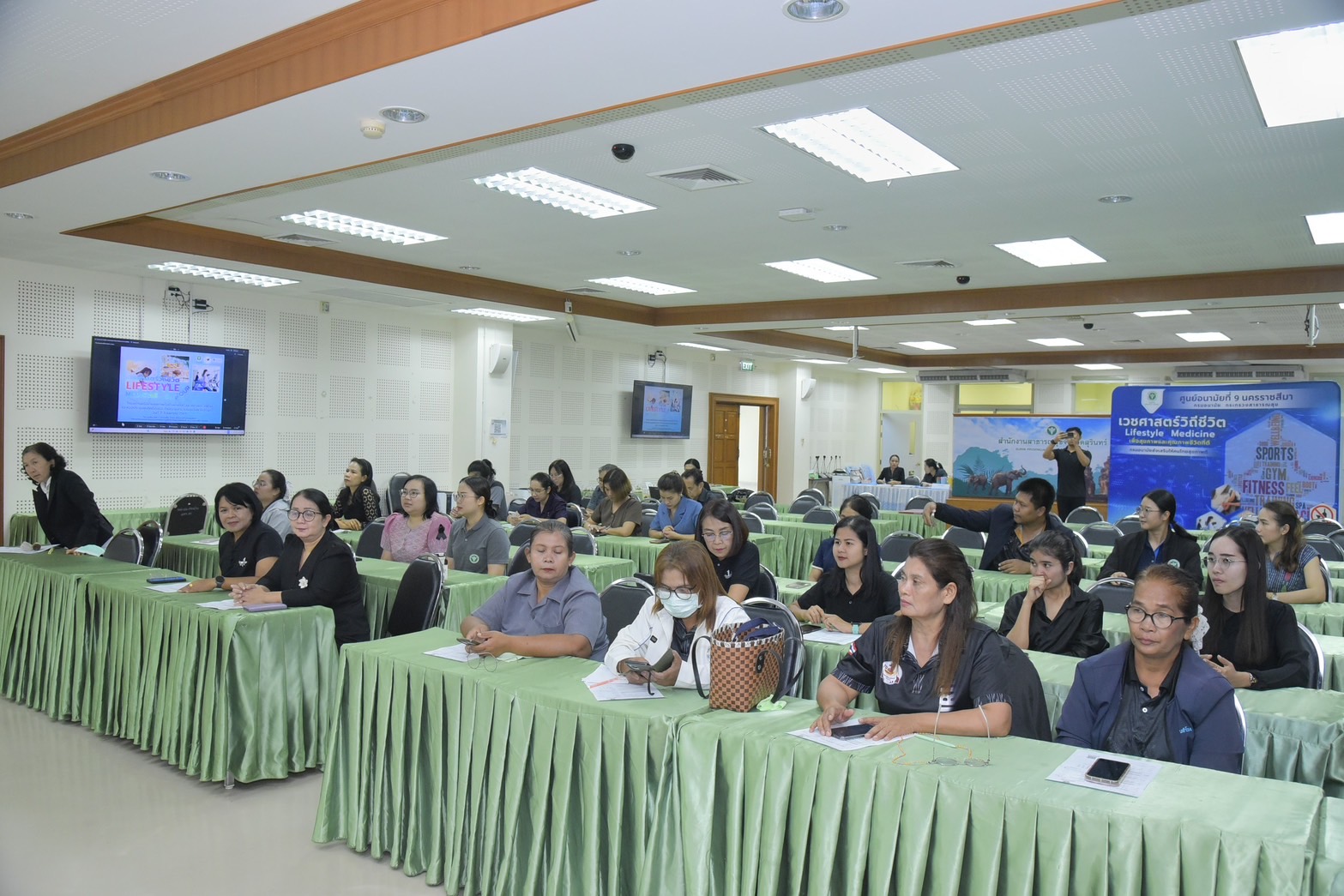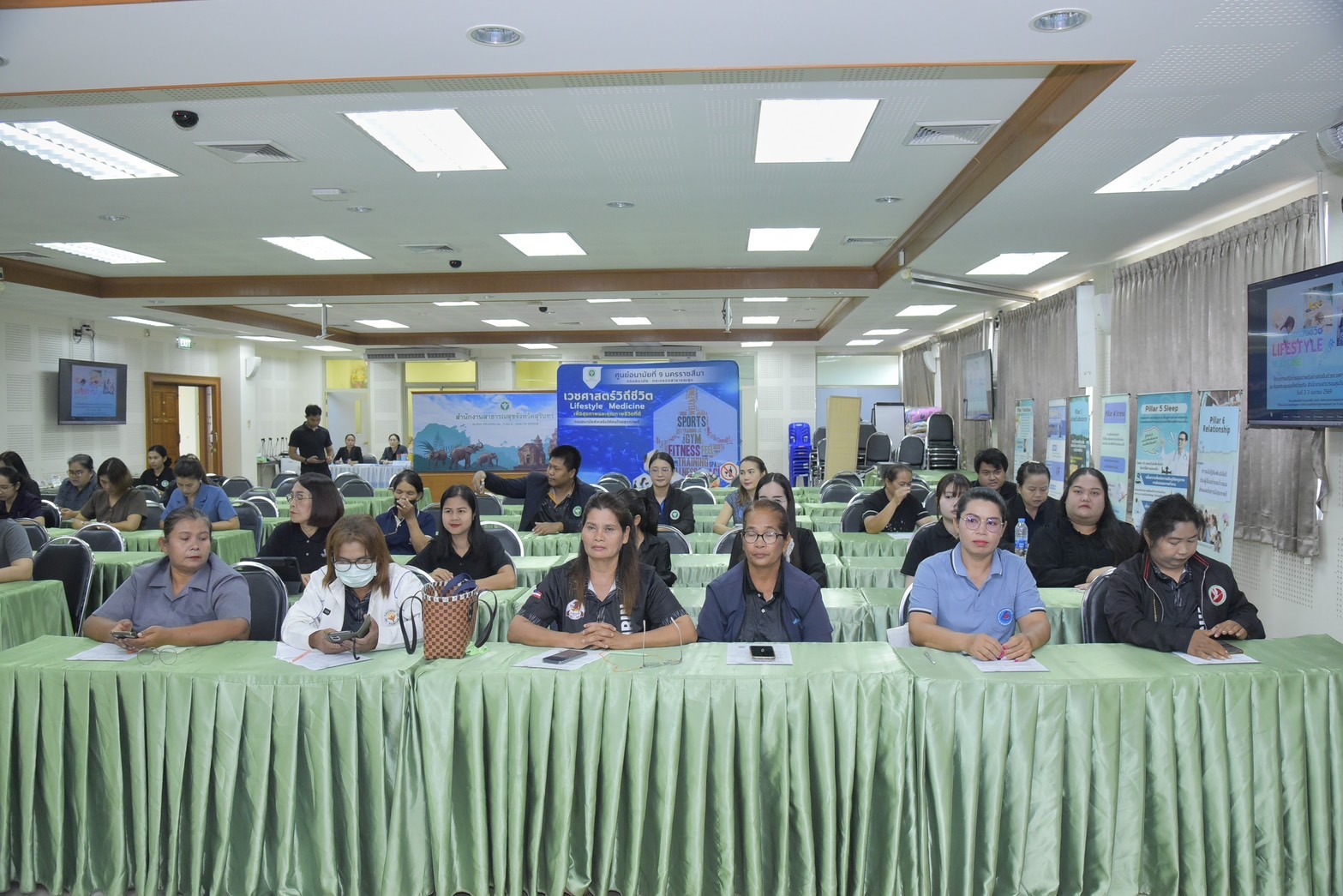 การอบรมครั้งนี้มีผู้เข้ารับการอบรม ทั้งแบบ onsite และ online ประกอบด้วย ประชาชนทั่วไป อสม. และ บุคลากรทางด้านสาธารณสุขจังหวัดสุรินทร์ จำนวน 70 คน โดยมีวัตถุประสงค์เพื่อป้องกันการเกิดโรคไม่ติดต่อเรื้อรังให้กับประชาชนเขตสุขภาพที่ 9 ให้มีความรู้ในเรื่องพฤติกรรมสุขภาพตามแนวทางเวชศาสตร์วิถีชีวิตที่เหมาะสมและปรับเปลี่ยนพฤติกรรมสุขภาพในการป้องกันโรคไม่ติดต่อเรื้อรัง โดยใช้แนวทางเวชศาสตร์วิถีชีวิต ในการปรับเปลี่ยนพฤติกรรมที่ส่งผลต่อสุขภาพ ใน 6 ด้านที่สำคัญของชีวิต การอบรมในครั้งนี้มีกิจกรรม ได้แก่ การตรวจสุขภาพเบื้องต้นและการประเมินผลสุขภาพทางกาย การเรียนรู้เรื่องโภชนาการ การฝึกจัดสัดส่วนอาหารที่เหมาะสม การออกกำลังกาย การจัดการความเครียดและการส่งเสริมการนอนหลับอย่างมีคุณภาพ ให้ความรู้และสนับสนุนการเลิกบุหรี่ เลิกดื่มแอลกอฮอล์ และส่งเสริมความผูกพันการสนับสนุนจากผู้อื่น โดยในทุกกิจกรรมจะมีการประเมินผลก่อนและหลังการเข้าร่วมกิจกรรม เพื่อให้ผู้เข้าร่วมได้เห็นพัฒนาการของตนเอง โดยใช้การวัดค่าทางสุขภาพ ได้แก่ การตรวจวัดองค์ประกอบของร่างกายด้วยเครื่อง Body Impedance Analyzer (BIA) การประเมินความเครียด และการติดตามการเปลี่ยนแปลงพฤติกรรมสุขภาพต่อเนื่องใน 1 เดือน และ 3 เดือน