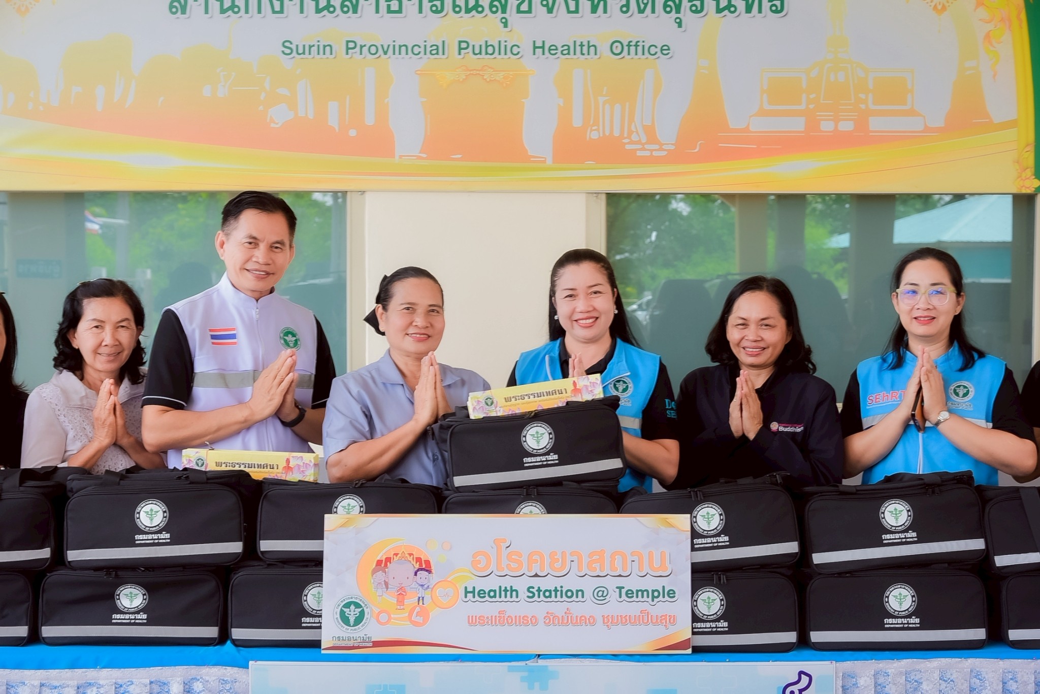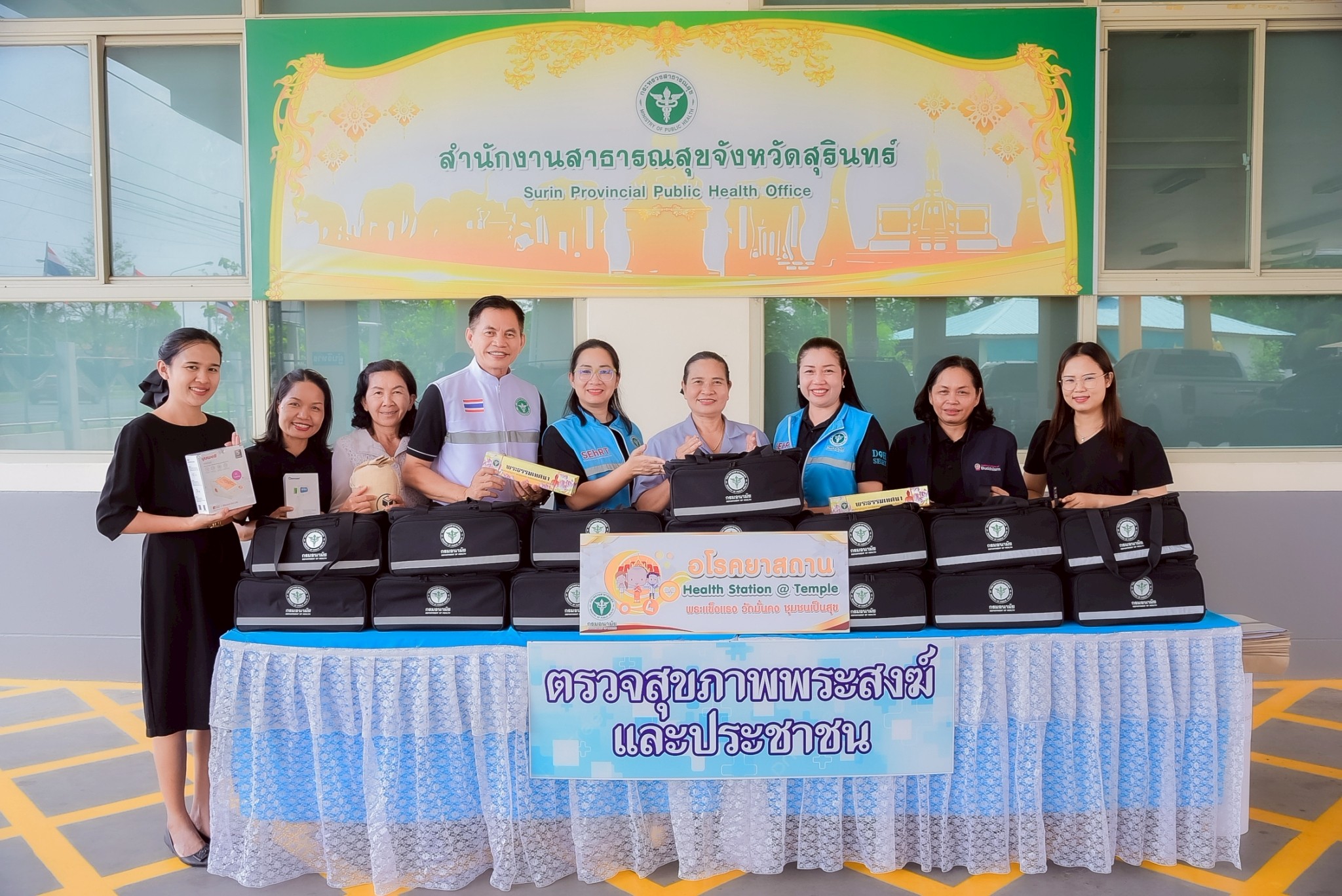 นย์อนามัยที่ 9 นครราชสีมา ลงพื้นที่สนับสนุนชุดอโรคยาสถาน กระเป๋าสุขภาพพร้อมอุปกรณ์ “โรงเรียนเบาหวานคณาราม” จังหวัดสุรินทร์